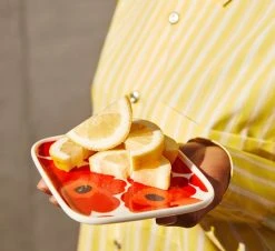 Denne Unikko asjetten med en diameter på 20 cm fra Marimekko har det hvite valmuemønsteret mot hvit bakgrunn. I tillegg til denne asjetten får du også flere kjøkkentekstiler og servisedeler med samme motiv. Servisene fra Marimekko tåler både oppvaskmaskin, mikrobølgeovn, fryser og ovn, perfekt for daglig bruk! Unikko er også flott å kombinere med det hvite serviset Oiva med samme form.