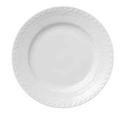 Hvit halvblonde er et servise som bÄde er svÊrt detaljrikt, og dekorativt, samtidig som det er enkelt. De hvite riflene er avsluttet med en halvblonde langs kanten som tilfÞrer romanse og eleganse til serviset. Hver eneste del i serviset er glasert for hÄnd. Serviset tÄler bÄde oppvaskmaskin og mikrobÞlgeovn.