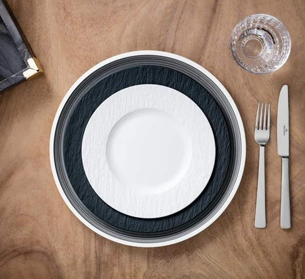 Serviset Manufacture Rock fra Villeroy & Boch har en matt og røff overflate som minner om skifersten, men er laget av kvalitetsporselen som tåler både oppvaskmaskin og mikrobølgeovn! Serviset finnes både i hvitt og sort, denne asjetten i hvitt har en diameter på 22 cm. Manufacture Rock kan bestilles her i nettbutikken, eller ta turen innom en av utvalgte Designforevigbutikker som lagerfører Manufacture Rock.
